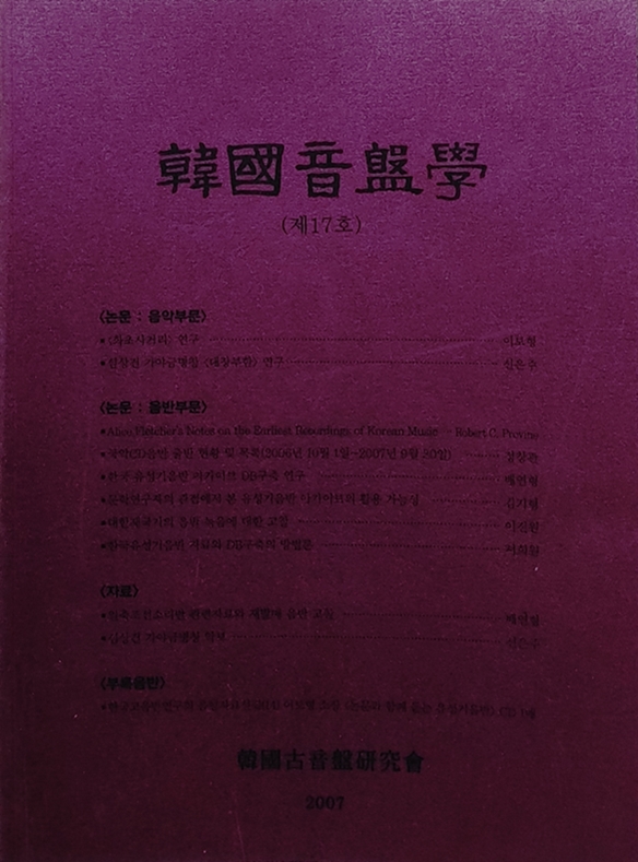 [Çѱ¹À½¹ÝÇÐ Á¦17È£](¼¿ï:Çѱ¹°íÀ½¹Ý¿¬±¸È¸, 2007³â) ÃÑ 272ÂÊ.