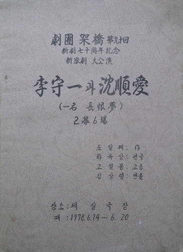 1978³â 6¿ù 14~20ÀÏ ¼¿ï ¼¼½Ç±ØÀå¿¡¼ ¿¸° ½ÅÆÄ±Ø ¡®À̼öÀϰú ½É¼ø¾Ö¡¯(Á¶ÀÏÁ¦ ÀÛ, ±Ø´Ü °¡±³ °ø¿¬) ´ëº».