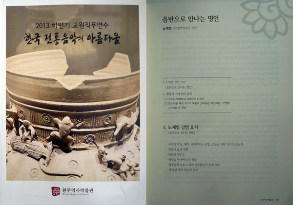 ³ëÀç¸í µî °øÀú [2013³â ÇϹݱ⠱³¿øÁ÷¹«¿¬¼ö - Çѱ¹ ÀüÅëÀ½¾ÇÀÇ ¾Æ¸§´Ù¿ò](°¿øµµ ¿øÁÖ:¿øÁÖ¿ª»ç¹Ú¹°°ü, 2013³â)