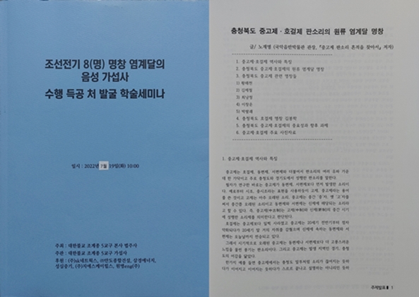 2022³â 7¿ù 19ÀÏ À½¼º °¡¼·»ç¿¡¼ ¿¸° ¡®Á¶¼± Àü±â 8¸íâ ¿°°è´ÞÀÇ À½¼º °¡¼·»ç µ¶°øÃ³ ¹ß±¼ Çмú ¼¼¹Ì³ª¡¯(¹ýÁÖ»ç ÁÖÃÖ, °¡¼·»ç ÁÖ°ü) ³í¹®Áý.