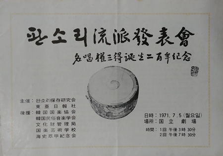 'ÆÇ¼Ò¸® À¯ÆÄ ¹ßǥȸ'(¸íâ ±Ç»ïµæ ź»ý 200³â ±â³ä) 1971³â 7¿ù 5ÀÏ ¼¿ï ±¹¸³±ØÀå °ø¿¬ ¾È³» Àμ⹰.