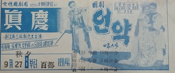 1958³â 9¿ù 27ÀϺÎÅÍ ¼öÀϰ£ ¹éµµ±ØÀå¿¡¼ ¿¸° »ç´Ü¹ýÀÎ ´ëÇѱ¹¾Ç¿ø »êÇÏ Áø°æ±¹±Ø´Ü ⸳ Á¦3ȸ ½ÅÀÛ ´ë°ø¿¬ ¿©¼º±¹±Ø '¾ð¾à'(4¸· 6Àå) ÀÔÀå±Ç.