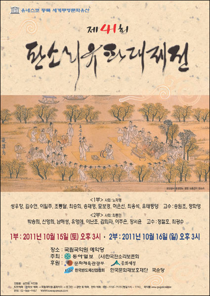 2011.10.15(Åä) 15:00, 10.16(ÀÏ) 15:00 ±¹¸³±¹¾Ç¿ø ¿¹¾Ç´ç ¡®Á¦41ȸ ÆÇ¼Ò¸® À¯ÆÄ ´ëÁ¦Àü¡¯