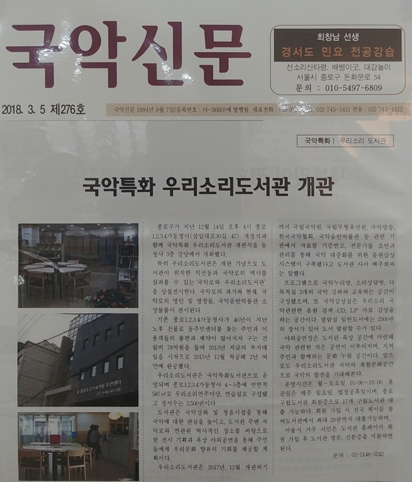 [±¹¾Ç½Å¹® 276È£] (2018³â 3¿ù 5ÀÏ ¹ßÇà) "±¹¾Ç Æ¯È ¿ì¸®¼Ò¸®µµ¼°ü °³°ü"