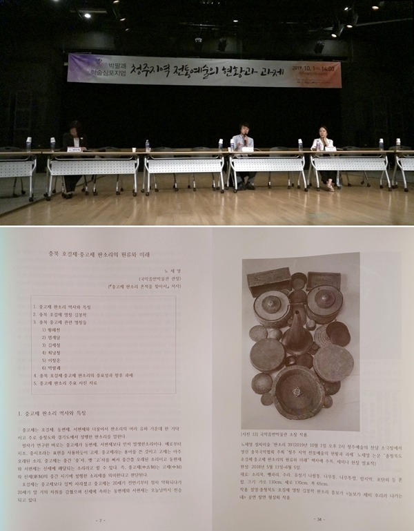 * 2019³â 10¿ù 1ÀÏ(È) ¿ÀÈÄ 2½Ã ûÁÖ¿¹¼úÀÇÀü´ç ¼Ò°ø¿¬Àå¿¡¼ ¿¸° ¹ÚÆÈ±¥Çмú½ÉÆ÷Áö¾ö 'ûÁÖ Áö¿ª ÀüÅ뿹¼úÀÇ ÇöȲ°ú °úÁ¦'(»ç´Ü¹ýÀÎ Çѱ¹±¹¾ÇÇùȸ ÃæÃ»ºÏµµÁöȸ ÁÖ°ü) ±¹¾ÇÀ½¹Ý¹Ú¹°°üÀå ³ëÀç¸í ³í¹® "ÃæÃ»ºÏµµ È£°ÉÁ¦¡¤Áß°íÁ¦ ÆÇ¼Ò¸®ÀÇ ¿ø·ù¿Í ¹Ì·¡", È£°ÉÁ¦ ÆÇ¼Ò¸® ¼³Ä¡¹Ì¼ú ¹ßÇ¥, ±¹¾ÇÀ½¹Ý¹Ú¹°°ü ¼ÒÀå Áß°íÁ¦ ÆÇ¼Ò¸® Èñ±Í À½¿ø ¼Ò°³ °¨»ó µîÀ» ÇàÇÑ Çà»ç ÃëÀç ±â»ç.