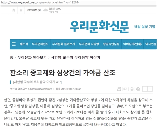 2020³â 2¿ù 3ÀÏ 20:35:42 µî·Ï [¿ì¸®¹®È½Å¹®] ¼Çѹü ±³¼öÀÇ ¿ì¸®À½¾Ç À̾߱â(457) ¡°ÆÇ¼Ò¸® Áß°íÁ¦¿Í ½É»ó°ÇÀÇ °¡¾ß±Ý »êÁ¶¡± ±â»ç¿¡ ±¹¾ÇÀ½¹Ý¹Ú¹°°ü ³ëÀç¸í °üÀåÀÇ ´ÙÀ½°ú °°Àº ±¹¾Ç ¿¬±¸ ±ÛÀÌ ÀÎ¿ë º¸µµµÊ.