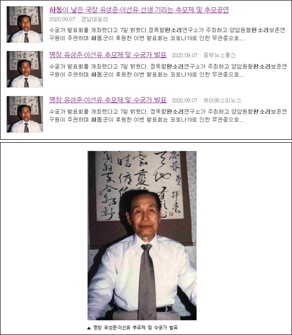 2020³â 9¿ù 7ÀÏÀÚ [°æ³²µ¥Àϸ®](Çϵ¿ÀÌ ³ºÀº ±¹Ã¢ À¯¼ºÁØ¡¤À̼±À¯ ¼±»ý ±â¸®´Â Ã߸ðÁ¦ ¹× Ãß¸ð°ø¿¬), [Áߺ맫ºÅë½Å](¸íâ À¯¼ºÁØ¡¤À̼±À¯ Ã߸ðÁ¦ ¹× ¼ö±Ã°¡ ¹ßÇ¥), [ÄÉÀÌ¿¡½ºÇÇ´º½º](¸íâ À¯¼ºÁØ¡¤À̼±À¯ Ã߸ðÁ¦ ¹× ¼ö±Ã°¡ ¹ßÇ¥) ±â»ç¿¡ ´ÙÀ½°ú °°Àº ±¹¾ÇÀ½¹Ý¹Ú¹°°ü ÀÚ·á°¡ »çÁø ¼³¸íÀÌ À߸ø ¸í½ÃµÈ ä ¹«´Ü »ç¿ëµÇ¾î º¸µµµÊ. ÁÖÃÖÃø¿¡¼ º¸µµÀڷḦ À߸ø ¹èÆ÷ÇÏ¿© ¹ß»ýÇÑ °ÍÀ̶ó°í ÇϰÚÀ½.