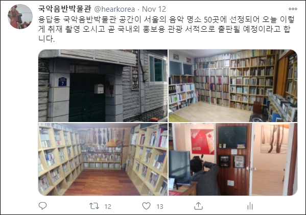 ¿ë´äµ¿ ±¹¾ÇÀ½¹Ý¹Ú¹°°ü °ø°£ÀÌ ¼¿ïÀÇ À½¾Ç ¸í¼Ò 50°÷¿¡ ¼±Á¤µÇ¾î ¿À´Ã ÀÌ·¸°Ô ÃëÀç ÃÔ¿µ ¿À½Ã°í