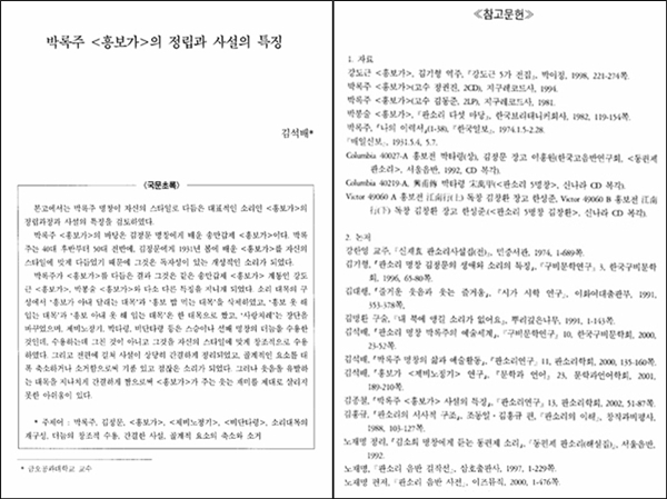 ±è¼®¹è ÆÇ¼Ò¸®ÇÐÀÚ ³í¹® "¹Ú·ÏÁÖ <Èﺸ°¡>ÀÇ Á¤¸³°ú »ç¼³ÀÇ Æ¯Â¡" [ÆÇ¼Ò¸® ¿¬±¸ Á¦21Áý](ÆÇ¼Ò¸®ÇÐȸ, 2006³â 4¿ù) 123~163ÂÊ¿¡