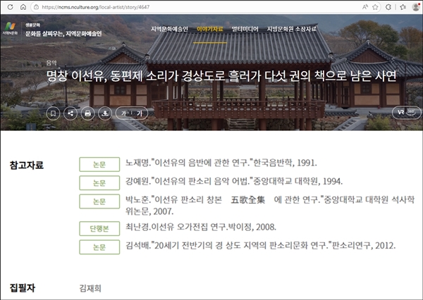 Çѱ¹¹®È¿ø¿¬ÇÕȸ Áö¿ªN¹®È ȨÆäÀÌÁö Áö¿ª¹®È¿¹¼úÀÎ À̾߱âÀÚ·á DBÀÇ ±èÀçÈñ ÁýÇÊ ¡°¸íâ À̼±À¯, µ¿ÆíÁ¦ ¼Ò¸®°¡ °æ»óµµ·Î Èê·¯°¡ ´Ù¼¸ ±ÇÀÇ Ã¥À¸·Î ³²Àº »ç¿¬¡±(https://ncms.nculture.org/local-artist/story/4647)¿¡ ±¹¾ÇÀ½¹Ý¹Ú¹°°ü ³ëÀç¸í °üÀåÀÇ ³í¹® ¡°À̼±À¯ÀÇ À½¹Ý¿¡ °üÇÑ ¿¬±¸¡± [Çѱ¹À½¹ÝÇРⰣȣ](Çѱ¹°íÀ½¹Ý¿¬±¸È¸, 1991³â, 225~242ÂÊ)°¡ ÀοëµÊ.