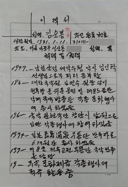 ´ë±Ý¡¤ÇǸ® ´ë°¡ ±è¼øºÀ ¸íÀÎ 1993³â ÀÚÇÊ ¾à·Â.